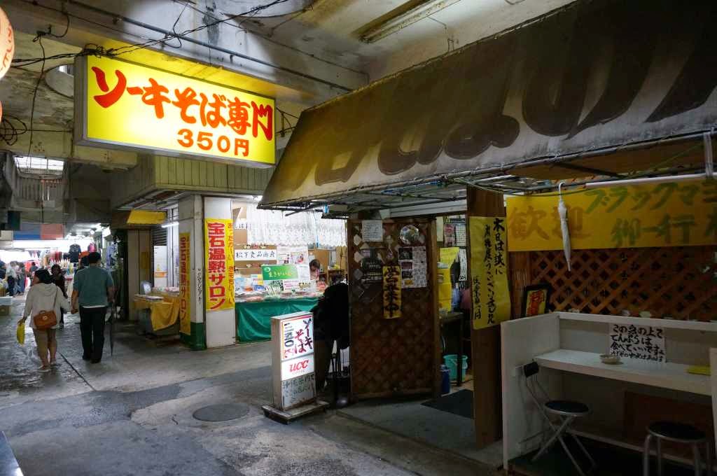 公設市場の近くにあるソーキそばの店。1時半頃に行くとガラガラだ!と思って席に着くと、後から後からお客が入ってきて満席状態に。繁盛してます。